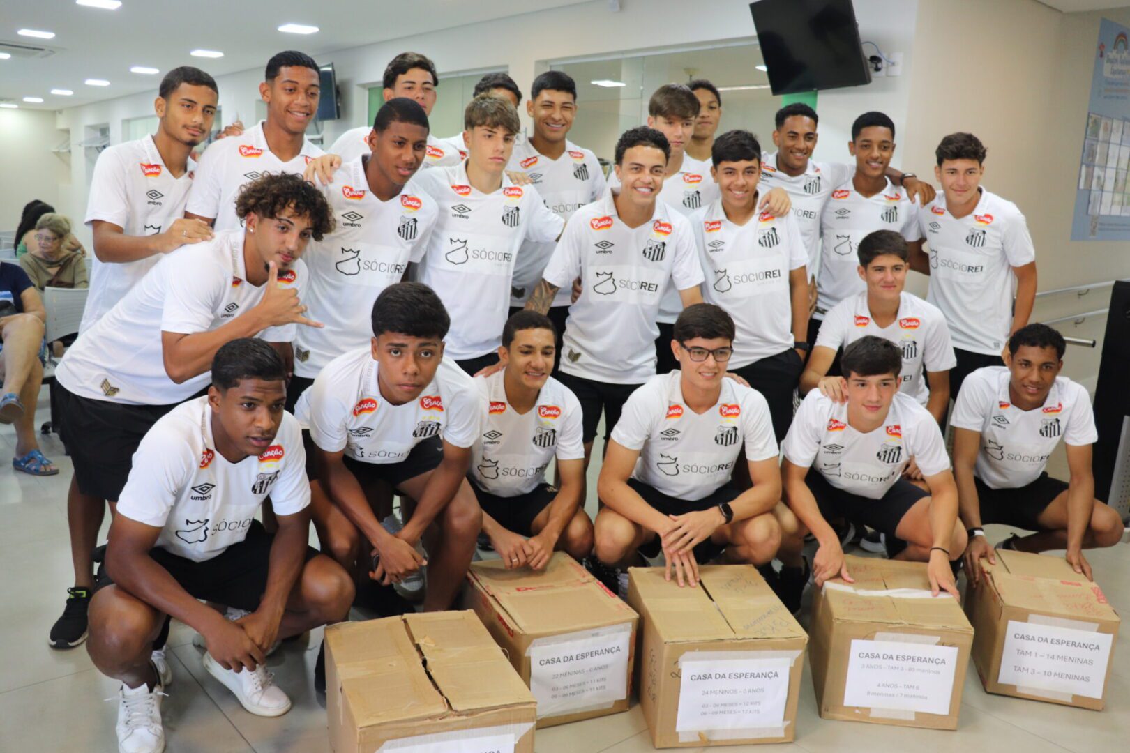 No dia 26 de dezembro, a Casa da Esperança de Santos (CES) recebeu uma visita especial: o time sub-17 do Santos Futebol Clube. Os jovens atletas promoveram um gesto solidário ao doar 110 peças de roupas para as crianças atendidas pela instituição, beneficiando diretamente famílias da comunidade local.